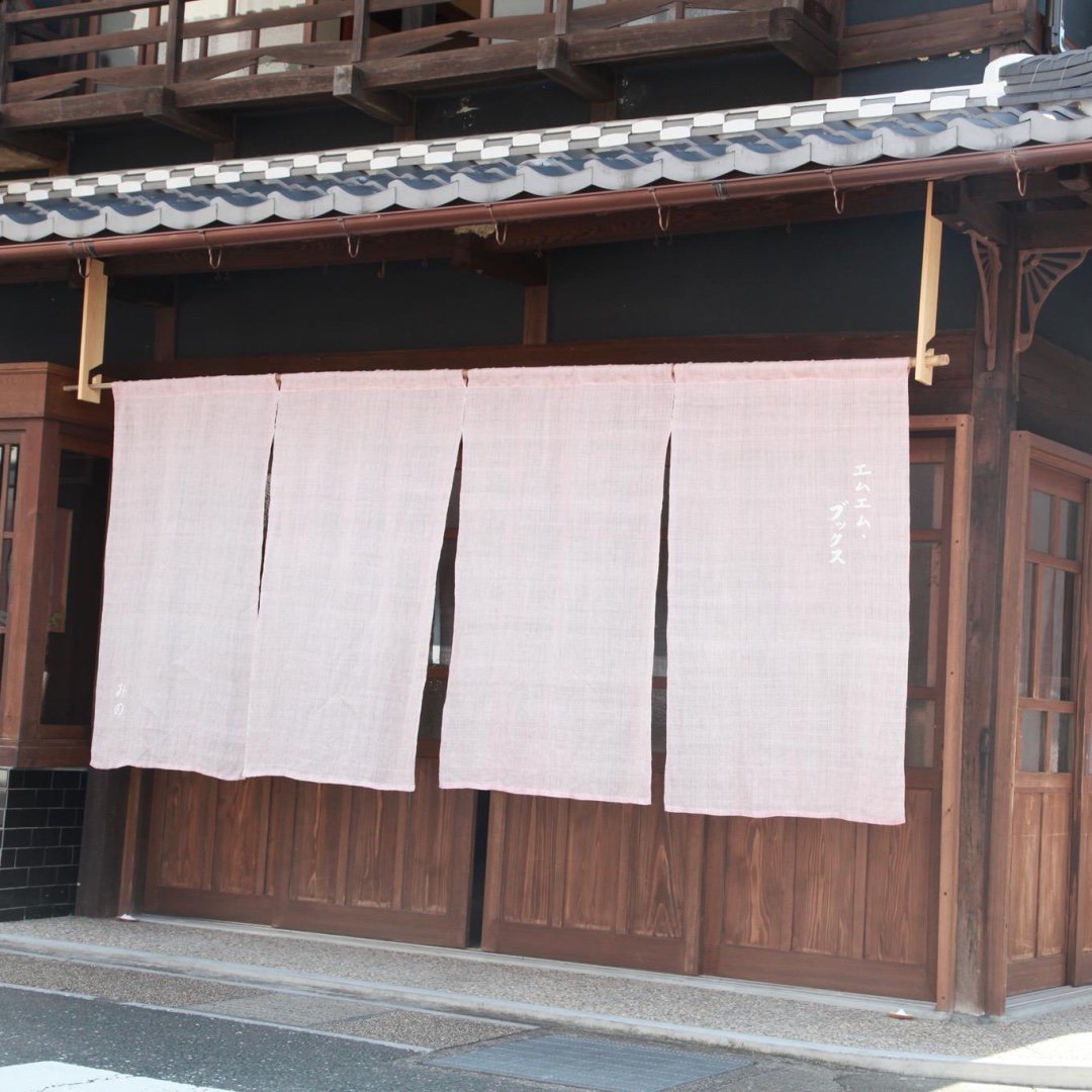 エムエム・ブックスの書籍はもちろん、冷えとり健康法、エドガー・ケイシー療法等に関連するセルフケアグッズ、天然繊維のエシカルな服、オーガニック食品なども取り扱っています。天然の茜で染められたピンク色ののれんが目印です。