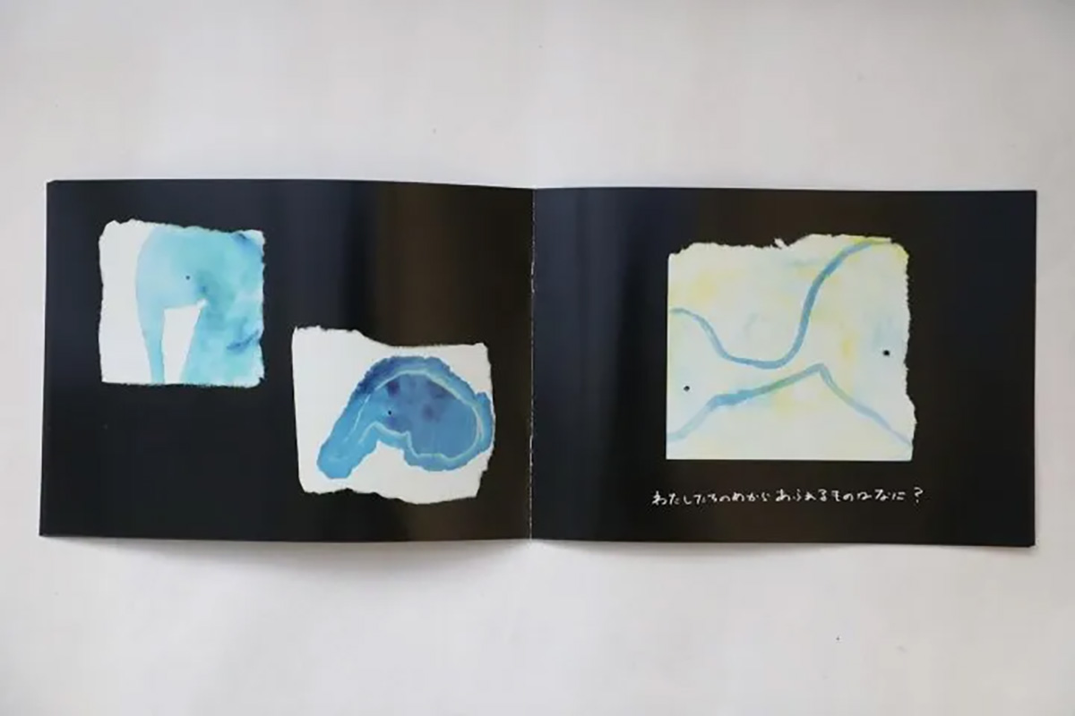 美濃の手漉き和紙を無作為に破り、その上に描いた絵の物語です。