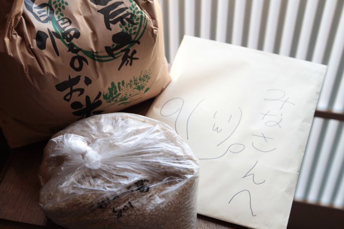 ありゃ、田んぼの先生からお米が届いただよ!