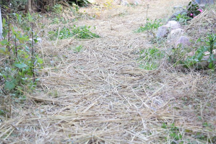 うちの田んぼでとれたわらを庭中に敷き詰めたのです。