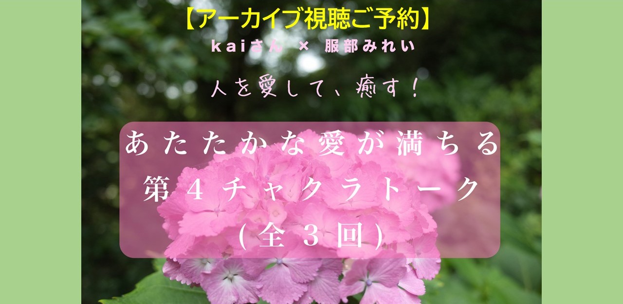 終了 出版記念! kaiさん×服部みれいの「第4チャクラトーク」アーカイブの配信がスタート!