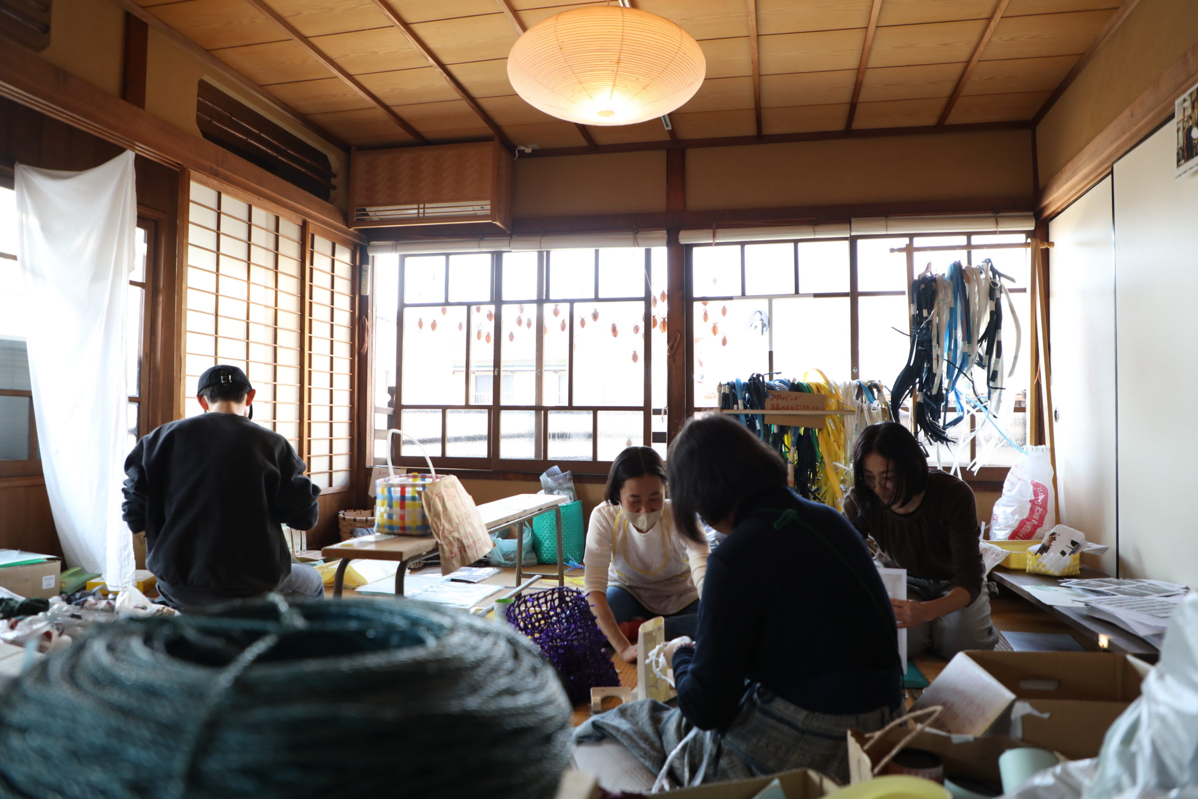 スタッフみんなで繕いながら